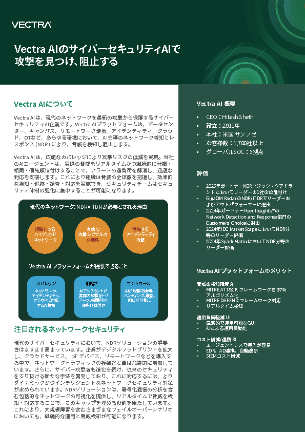 ガートナー認定のNDRリーダーVectra AIが攻撃を「面」で可視化し対応すべき脅威を検知