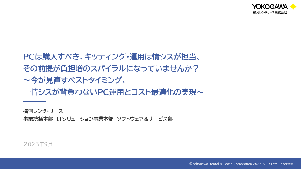 「PCは購入すべきもの」「運用は情シスがすべて対応」という考え方が前提となっている企業では、導入時のキッティングだけでなく、運用中の資産管理、OS・パッチ対応、利用者からの問い合わせまでを一手に引き受ける体制になりがちです。しかし人材リソースが限られる中で、こうした業務をすべて社内で処理するのは非効率であり、情シスの疲弊を招くだけでなく、ITサービスレベルの低下にもつながりかねません。今こそ、その前提を見直す必要があります。