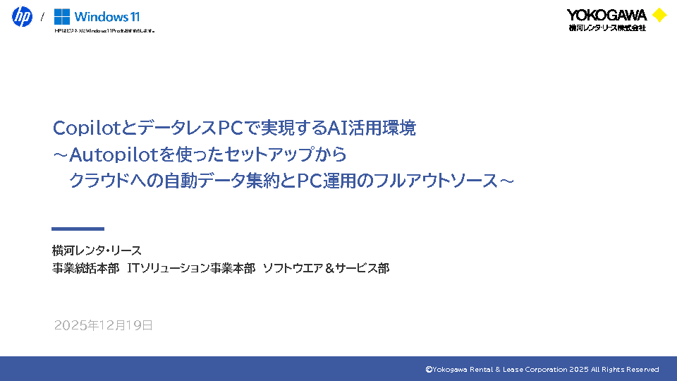 11:05~11:45 CopilotとデータレスPCで実現するAI活用環境 〜Autopilotを使ったセットアップからクラウドへの自動データ集約とPC運用のフルアウトソース〜