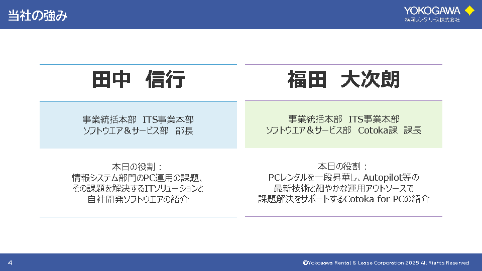 また、AI活用に欠かせない“統一PC運用”を実現するために、Windows Update・アプリ更新の一元管理やユーザーセルフサービス型のアプリ配布ツール、調達〜配布〜運用までのライフサイクル統合といった複数サービスを連携させ、情報システム部門の運用負荷を段階的に軽減する実践的モデルも合わせてご紹介します。