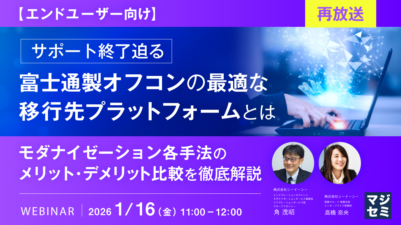 【再放送】サポート終了迫る、富士通製オフコンの最適な移行先プラットフォームとは 〜モダナイゼーション各手法のメリット・デメリット比較を徹底解説〜お申し込み