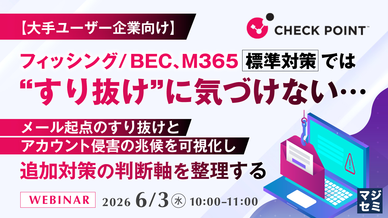 【大手ユーザー企業向け】フィッシング/BEC、M365標準対策では“すり抜け”に気づけない… ~メール起点のすり抜けとアカウント侵害の兆候を可視化し、追加対策の判断軸を整理する~お申し込み