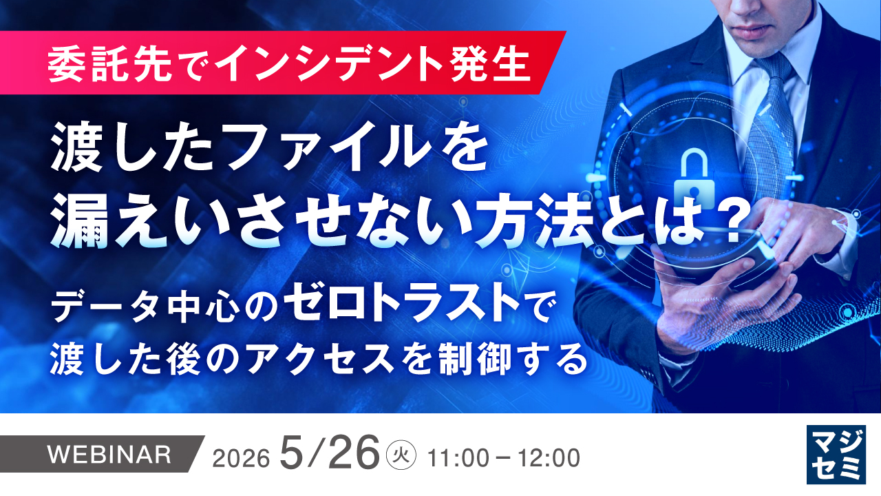 委託先でインシデント発生、渡したファイルを漏えいさせない方法とは? ~データ中心のゼロトラストで、渡した後のアクセスを制御する~お申し込み