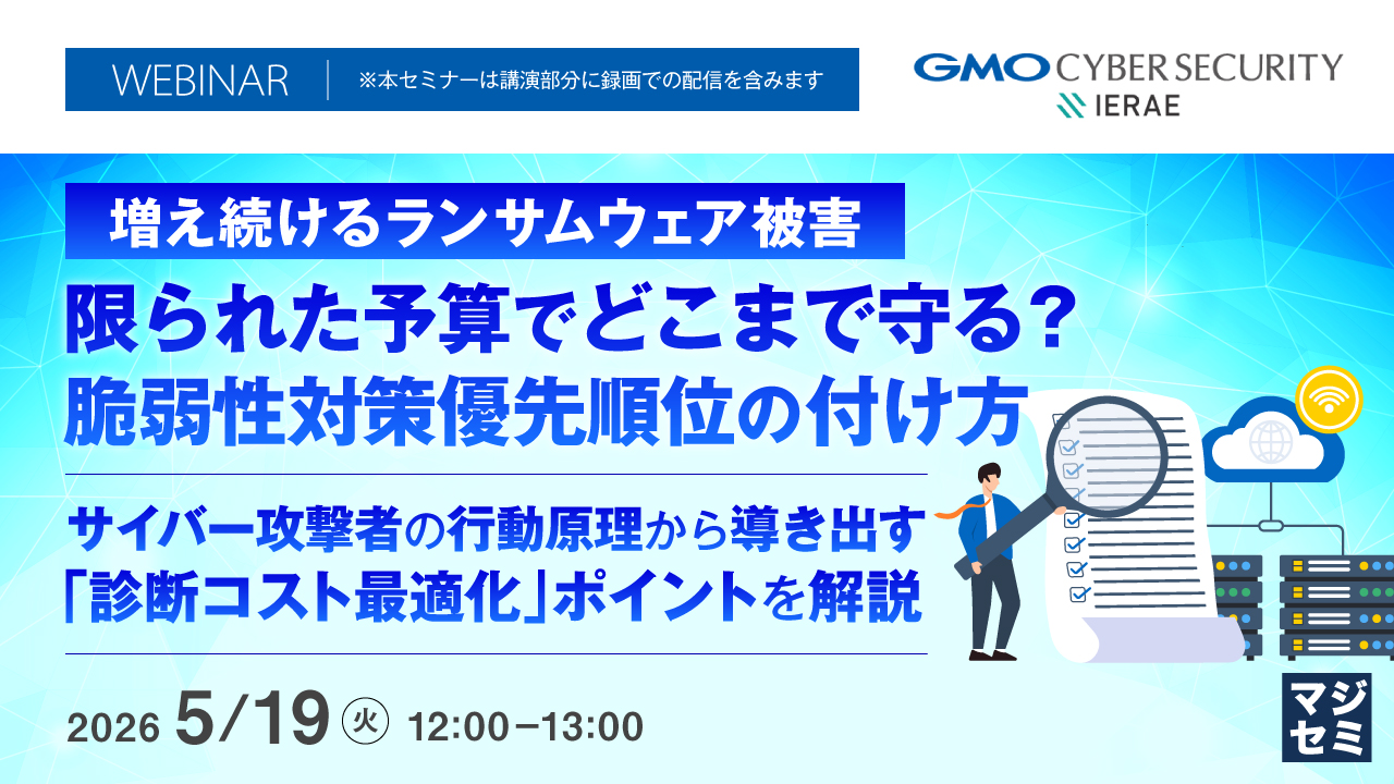 増え続けるランサムウェア被害、限られた予算でどこまで守る?脆弱性対策優先順位の付け方 ~サイバー攻撃者の行動原理から導き出す、「診断コスト最適化」ポイントを解説~お申し込み