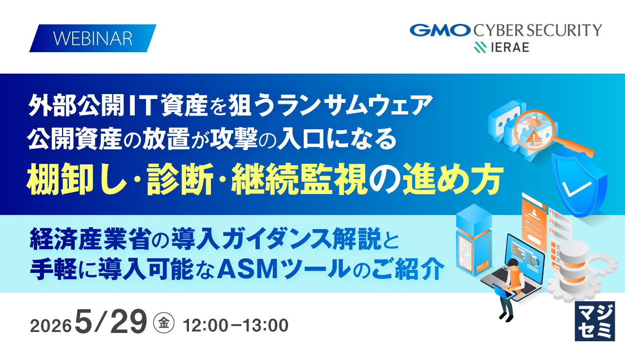 外部公開IT資産を狙うランサムウェア、公開資産の放置が攻撃の入口になる 棚卸し・診断・継続監視の進め方 ~経済産業省の導入ガイダンス解説と、手軽に導入可能なASMツールのご紹介~お申し込み