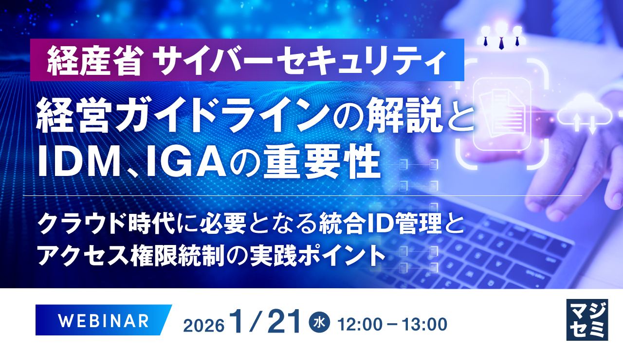 経産省 サイバーセキュリティ経営ガイドラインの解説とIDM、IGAの重要性 ~クラウド時代に必要となる統合ID管理とアクセス権限統制の実践ポイント~お申し込み