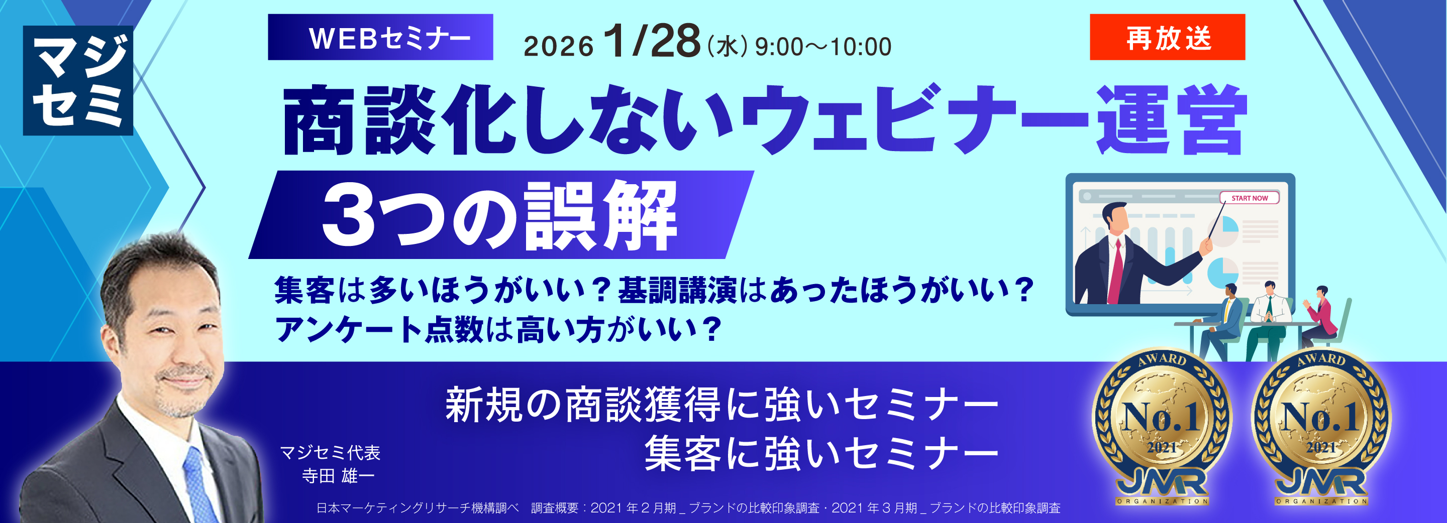 【再放送】商談化しないウェビナー運営、3つの誤解 ~集客は多いほうがいい?基調講演はあったほうがいい?アンケート点数は高い方がいい?~お申し込み
