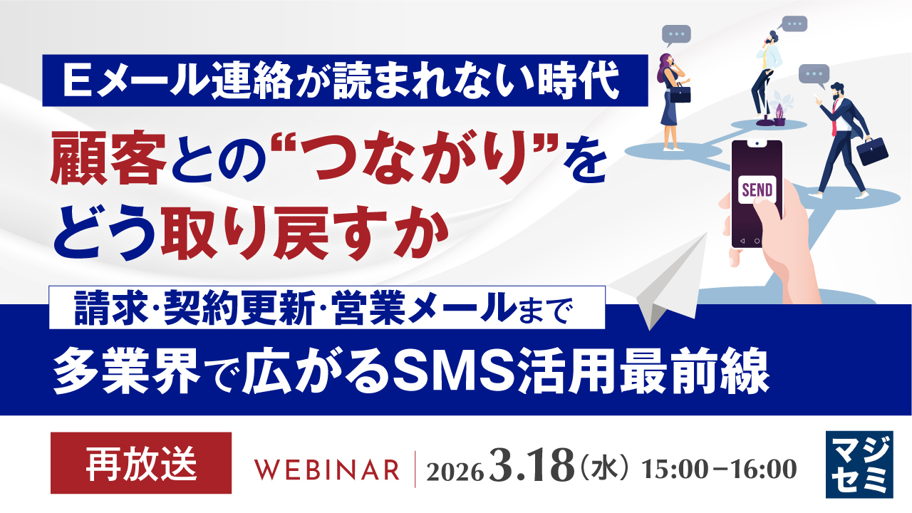 【再放送】Eメール連絡が読まれない時代、顧客との“つながり”をどう取り戻すか ~請求・契約更新・営業メールまで、多業界で広がるSMS活用最前線~お申し込み