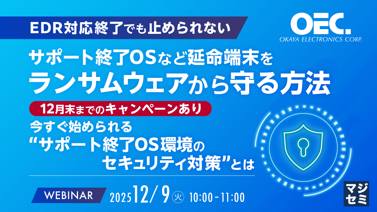 【EDR対応終了でも止められない】サポート終了OSなど延命端末をランサムウェアから守る方法 ~12月末までのキャンペーンあり、今すぐ始められる“サポート終了OS環境のセキュリティ対策”とは~お申し込み
