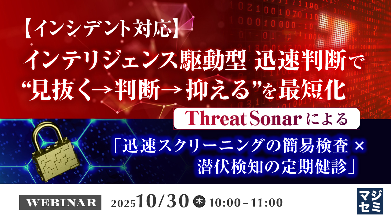 【インシデント対応】インテリジェンス駆動型 迅速判断で“見抜く→判断→抑える”を最短化 〜ThreatSonarによる「迅速スクリーニングの簡易検査 × 潜伏検知の定期健診」〜お申し込み