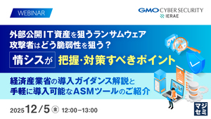 12:05~12:45 増える外部公開IT資産、攻撃者はどう脆弱性を狙うのか? 情シスが把握・対策すべきポイント~経済産業省の導入ガイダンス解説と、手軽に導入可能なASMツールのご紹介~