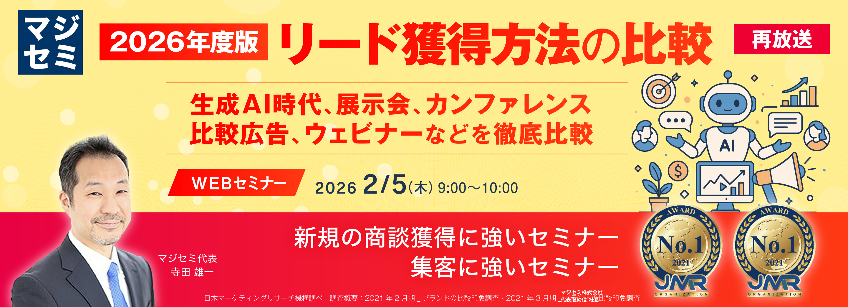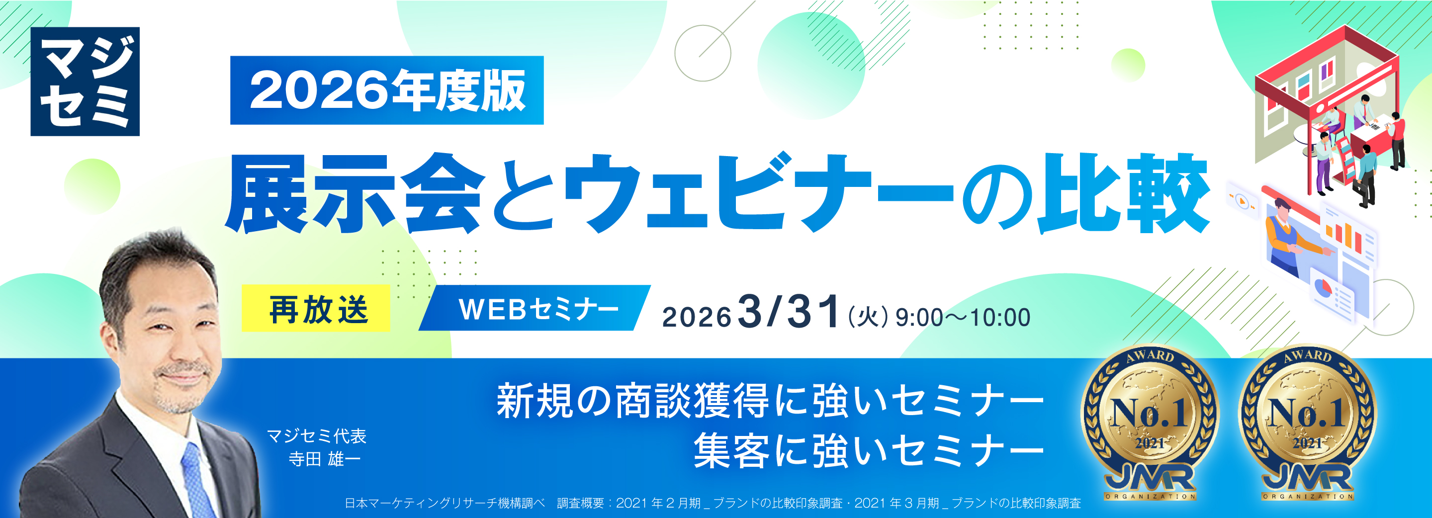 コンテンツマーケティング、ウェビナー・Webセミナー、広告戦略などデジタルマーケティングから、商談・リード獲得、CRM/SFA、Salesforceなど営業関連のツール&ノウハウまで、法人・個人顧客獲得のためのウェビナーを検索できます。