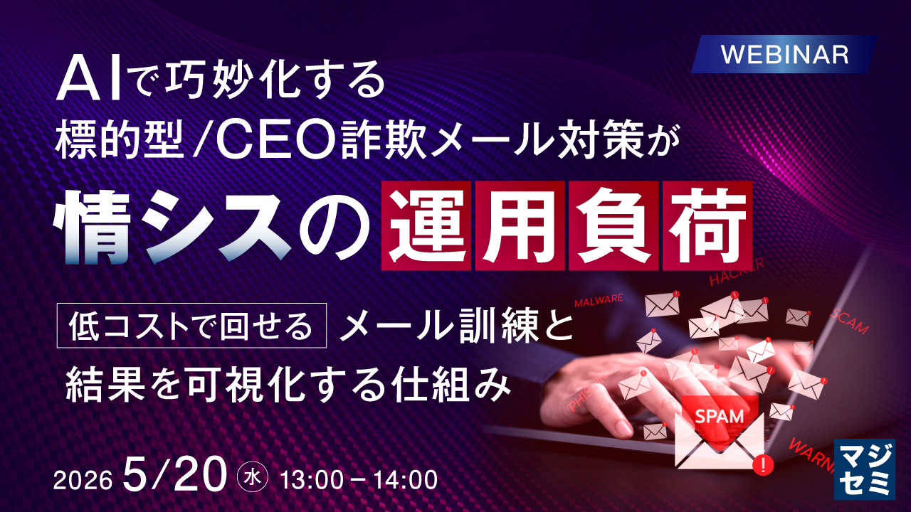 サイバー攻撃・不正アクセス、ランサムウェア・標的型攻撃、マルウェア対策、情報漏洩防止などの各種施策から、WebアプリケーションファイアーウォールやSWGのスキル・ツールなどセキュリティ関連のウェビナー情報です。