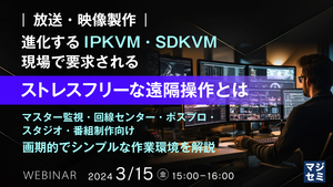 15:05~15:45 【放送・映像製作】進化するIPKVM・SDKVM 現場で要求されるストレスフリーな遠隔操作とは ~マスター監視・回線センター・ポスプロ・スタジオ・番組制作向け 画期的でシンプルな作業環境を解説~
