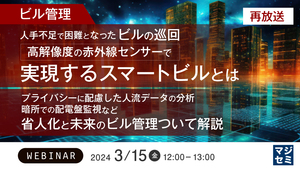 12:05~12:45 【ビル管理】人手不足で困難となったビルの巡回 高解像度の赤外線センサーで実現するスマートビルとは ~プライバシーに配慮した人流データの分析、暗所での配電盤監視など省人化と未来のビル管理ついて解説~