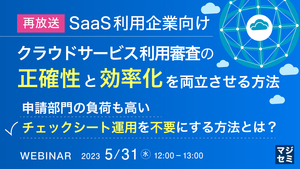 12:05~12:45 【SaaS利用企業向け】クラウドサービス利用審査の”正確性”と”効率化”を両立させる方法〜申請部門の負荷も高い、チェックシート運用を不要にする方法とは?〜