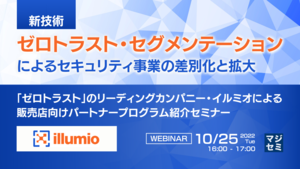 16:05~16:45 【SIer/ITベンダー向け】マイクロセグメンテーションとは?侵入されてしまった後で、被害を最小限に抑えるために 〜「ゼロトラスト」のリーディングカンパニー・イルミオによるパートナープログラム紹介セミナー〜