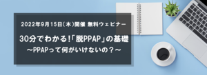 本ウェビナーでは、「脱PPAP」実現のための基本情報をご紹介します。「そもそもPPAPって何がいけないの?」「PPAP対策ってどんな方法があるの?」このような疑問にお答えします!