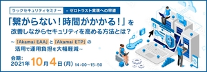 本ページは、主催:株式会社ラック、共催:アカマイ・テクノロジーズ合同会社、協力:富士通Japan株式会社、株式会社マイナビ マイナビニュースセミナー運営事務局、株式会社ネクプロ (オンラインWebセミナー 配信協力)のWebセミナー『ゼロトラスト実現への早道「繋がらない! 時間がかかる!」を改善しながらセキュリティを高める方法とは?~「Akamai EAA」と「Akamai ETP」の活用で運用負担を大幅軽減~』のご紹介です。