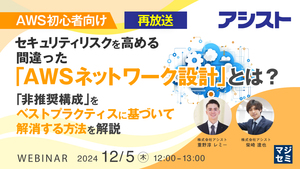 12:05~12:45 【AWS初心者向け】セキュリティリスクを高める、間違った「AWSネットワーク設計」とは? ~「非推奨構成」をベストプラクティスに基づいて解消する方法を解説~