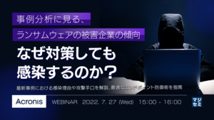 本セミナーは、2022年6月23日に開催したセミナー「最新の被害事例が示す、今どきのランサムウェア事情 対策しても感染するのはなぜ?」と同じ講演内容を含んでおります。多数のご要望により、追加開催させていただきます。