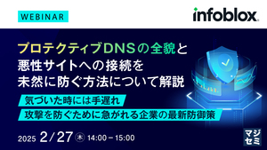 従来のエンドポイントなどのセキュリティ対策だけでは防げないDNS攻撃を防ぐための最新技術として、Infoblox Threat Defenseを用いたプロテクティブDNSについて詳しくご紹介します。これにより、DNSトンネリングやその他の悪意ある通信を未然に防ぎ、攻撃者がDNSを悪用して行う不正アクセスやデータ漏洩を防ぐ実際の事例と共に、効果的な対策の立て方をご紹介します。