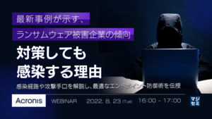本セミナーは、2022年8月23日開催セミナー「最新事例が示す、ランサムウェア被害企業の傾向 対策しても感染する理由」と同じ講演内容を含んでおります。多数のご要望により、追加開催させていただきます。