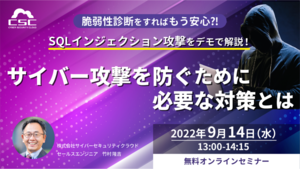 本セミナーでは、サイバー攻撃の入り口となる「脆弱性」にフォーカスを当てます。 機密情報を盗むことを可能とするサイバー攻撃の一つである「SQLインジェクション」を、 デモ専用サイトにて架空の攻撃を実施し、実際に攻撃者がWebサイトから情報を盗むプロセスを解説いたします。