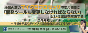 機器内蔵のマイクロプロセッサを変える際に「開発ツールも変更しなければならない」という課題を...