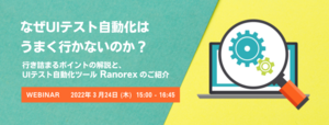 本ページは、主催:株式会社楽堂、協力:株式会社テクマトリックス のWebセミナー「なぜUIテスト自動化はうまく行かないのか?~行き詰まるポイントの解説と、UIテスト自動化ツール Ranorexのご紹介~」のご紹介です。