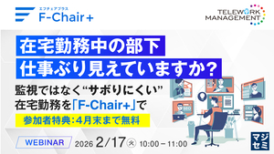 10:05~10:45 在宅勤務中の部下、仕事ぶり見えていますか? ~監視ではなく“サボりにくい”在宅勤務を「F-Chair+」で(参加者特典:4月末まで無料)~