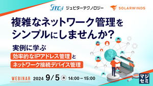 本セミナーでは、これらの課題を一挙に解決するSolarWindsの統合ネットワーク監視ソリューションをご紹介します。SolarWindsのHybrid Cloud Observability (HCO)は、ネットワーク監視、IPアドレス管理、ユーザーデバイス管理、ネットフロー監視などの機能を1つのプラットフォームに統合し、IT管理者の業務効率を劇的に向上させます。実際の導入事例を交えながら、複雑化するネットワーク環境において、管理負担を軽減しつつ、より高度な監視と制御を実現する方法をお伝えします。ネットワーク管理の負担から解放され、より戦略的なIT施策に時間を割きたいとお考えのIT管理者の方々は、ぜひご参加ください。