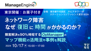 本セミナーでは、ネットワーク障害の復旧時間を劇的に短縮するアプローチをご紹介します。ネットワーク監視ツール「OpManager」のマップ機能を活用することで、複雑なネットワーク構成を自動的に可視化し、障害発生時には問題箇所を瞬時に特定することができます。