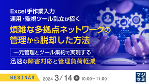 10:05~10:45 Excel手作業入力、運用・監視ツール乱立が招く、煩雑な多拠点ネットワークの管理から脱却した方法〜一元管理とツール集約で実現する、迅速な障害対応と管理負荷軽減〜