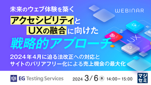 14:05~14:45 未来のウェブ体験を築く: アクセシビリティとUXの融合に向けた戦略的アプローチ ~2024年4月に迫る法改正への対応と、サイトのバリアフリー化による売上機会の最大化~