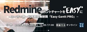 ・RedmineガントチャートとEasy Gantt PROの違い ・販促キャンペーンをガントチャートで管理する事例紹介 ・割引キャンペーン紹介