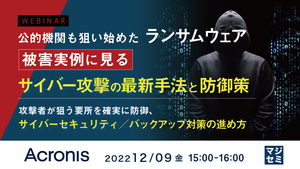 本セミナーは、2022年12月9日開催セミナー「公的機関も狙い始めたランサムウェア 被害実例に見るサイバー攻撃の最新手法と防御策」と同じ講演内容を含んでおります。多数のご要望により、追加開催させていただきます。