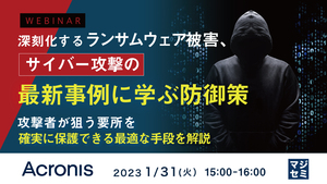 本セミナーは、2023年1月31日開催セミナー「深刻化するランサムウェア被害、サイバー攻撃の最新事例に学ぶ防御策」と同じ講演内容を含んでおります。多数のご要望により、追加開催させていただきます。