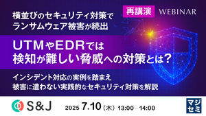 本セミナーでは、豊富なセキュリティ事故対応の経験を持つS&Jが、実際のインシデント対応の支援事例を通じて見えてきた、日本で発生しているランサムウェア被害の攻撃手法や攻撃フロー、そして従来型セキュリティ対策とのミスマッチについて詳しく解説します。 また、そのミスマッチを解消し、被害を防ぐための実践的な対策方法についても解説します。