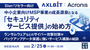 本セミナーでは、顧客企業のIT運用支援ビジネスの一環として、セキュリティサービスの提供を検討されているSIer、IT機器/PC販売/リース事業者などを対象に開催します。セキュリティサービスの提供によって、自社の事業成長や継続的な収益の獲得、顧客保護を実現するヒントをご紹介します。 また、サービス提供の課題を解決するソリューションとして、Acronisが提供する統合型データ保護サービス「Acronis Cyber Protect Cloud」をご紹介。ランサムウェアなどの最新の脅威から組織を防御し、バックアップ/ディザスタリカバリといったデータ保護機能を解説。事業者である管理側の労力を最小化し、顧客企業に最適なセキュリティサービスを、より低コストで実現できるメリットなどを解説します。 「セキュリティサービス提供に必要なセキュリティ技術とは何か?」「どうすれば効率的にインフラを構築・運用できるのか」など、市場や顧客のニーズに合わせたMSP事業を展開したい企業の担当者は、ぜひご参加ください。