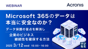 サイバー攻撃の複雑化に対抗するには、セキュリティとバックアップの統合が不可欠です。本セミナーでは、Acronis Cyber Protectを導入した成功事例をもとに、Microsoft 365環境におけるデータ保護の盲点を解消し、企業のビジネス継続性を確保する方法を解説します。さらに、万が一のデータ喪失や攻撃に対して、迅速かつ効果的に復旧できる方法と、データの安全性を保つための最適なアプローチを紹介します。