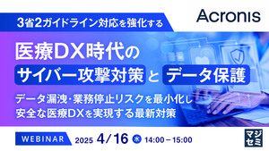 本セミナーでは、バックアップ・セキュリティ・運用管理を統合的に提供する「サイバープロテクション」アプローチにより、3省2ガイドラインへの効率的な対応を実現する方法をご紹介します。アンチマルウェア、EDR、バックアップ/DR、パッチ管理などの包括的なセキュリティ機能を一元的に管理することで、限られたリソースでも高度な保護を実現できます。医療機関のIT担当者様、医療系システム開発企業様、SIer様など、医療分野のサイバーセキュリティ対策にお悩みの方々に最適な内容をお届けします。
