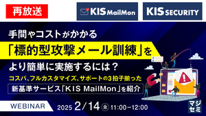 11:05~11:45 手間やコストがかかる「標的型攻撃メール訓練」をより簡単に実施するには?~コスパ、フルカスタマイズ、サポートの3拍子揃った新基準サービス「KIS MailMon」を紹介~