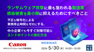 14:05~14:45 ランサムウェア攻撃に最も狙われる製造業、感染被害を最小限に抑えるためにすべきこと~不正な暗号化による業務停止時間をゼロにする。中小企業でも今すぐ対策可能なエンドポイントの強化方法~