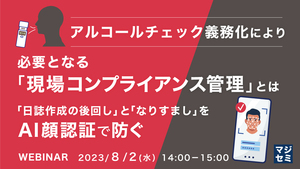 14:05~14:45 アルコールチェック義務化により必要となる現場コンプライアンス管理とは ~「日誌作成の後回し」と「なりすまし」をAI顔認証で防ぐ~