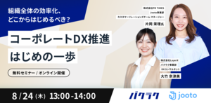 ①コーポレートDX、何から始めるべき? ②プロジェクト推進の手順・ポイント ③無料から使えるタスクDXツール「Jooto」のご紹介 ④経理も現場も業務効率化!コーポレートDXを加速させる「バクラク」のご紹介