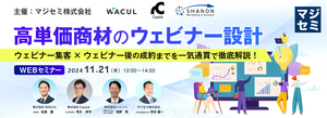 BtoBマーケティング施策で昨今、良く耳にする「ウェビナー」。 施策の用途は幅広く、リード獲得やリードナーチャリングとして活用されることも多くなっています。 一方で施策結果として、商談が他の施策よりも獲得効率が悪く、施策が停止するという問題に直面する企業も存在しています。 そこで、本セミナーでは「商談を効率よく獲れるセミナー企画」はどのようにして作成するのか、ウェビナー支援会社のマジセミが徹底解説させていただきます。