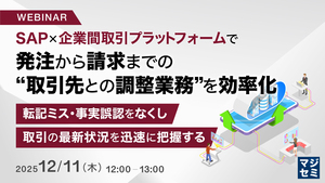 12:05~12:45 SAP×企業間取引プラットフォームで発注から請求までの“取引先との調整業務”を効率化~転記ミス・事実誤認をなくし取引の最新状況を迅速に把握する~