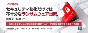 本セミナーでは、セキュリティ一辺倒のランサムウェア対策だけではなく、感染被害を最小限に抑えるために欠かせないデータ保護・管理対策の重要性を解説します。 また、ランサムウェア被害から回復するために必要な具体的な解決策を提示し、ランサムウェア感染後でも迅速に事業活動を回復させるヒントをご紹介します。いつ被害に遭うか分からない状況で、現状のランサムウェア対策、データ保護方法に不安があるという方は、ぜひご参加ください。