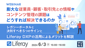 本ウェビナーでは、こうした情報共有の課題や旧来のシステムからの脱却について解説いたします。 ウェビナーの中でご紹介するLiferay DXPを活用することで、社内外の情報共有の課題をポータル構築で解決する手法をご紹介します。 Liferay DXPの特長として、カスタマイズ可能な標準機能が70以上あることで、業務効率や従業員体験の向上をサポートします。 また、多くの政府機関で利用されていることに裏付けされた、高度なセキュリティを備えており、安全な情報共有を実現できます。 あわせて、混同されがちなCMSとの違いについても解説いたします。 社内やグループ会社間での情報共有に課題を感じている方や、顧客や取引先・代理店との連携強化を実現したいとお考えの方に特におすすめの内容です。